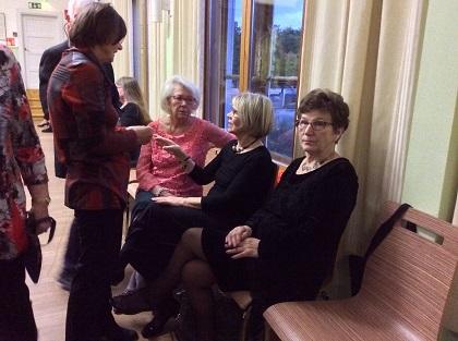 Wanhanajan iltamat 6.10.2017 Nummelan Rientola Ritva Lamminen, Seija Peltola ja Riitta Välimäki Kuvan otti Sirkka Klint